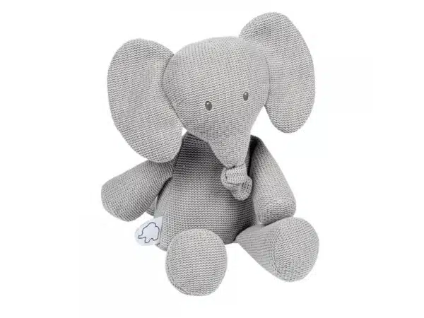 Strikket kosedyr med søtt ansikt som gir elefanten et koselig utrykk